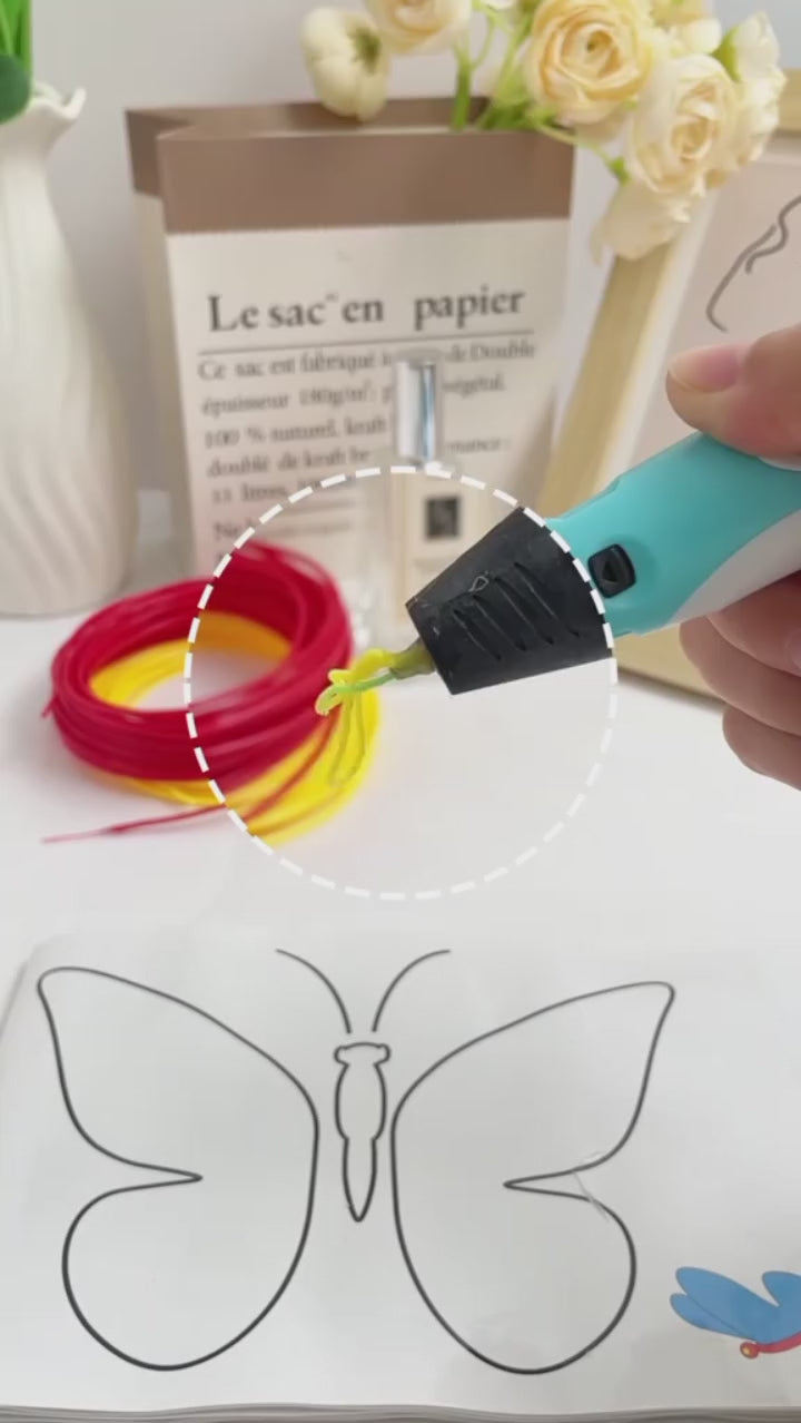 1. Enciende y Carga: El lápiz se calienta en segundos. Introduce el filamento PLA (ecológico).