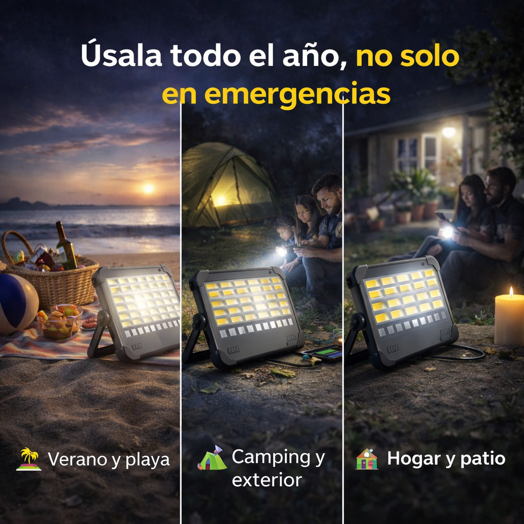 Perfecta para camping, playa, patio, trabajos nocturnos o cualquier situación donde no haya electricidad.