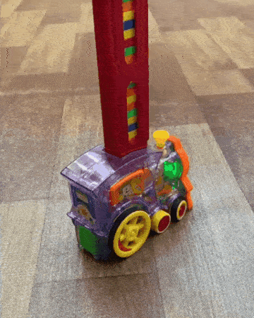 3️⃣ Guíalo suavemente. El tren va dejando una linea perfecta de fichas.